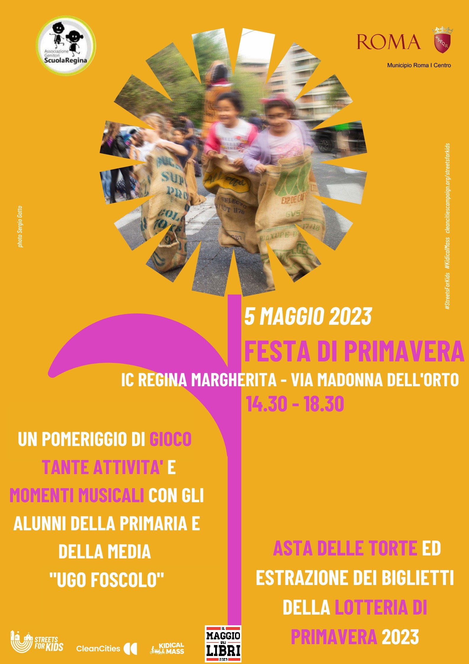 Venerdì 5 maggio dalle 14.30 alle 18.30 - nell'ambito della Festa di Primavera - Street for Kids Spring Edition e Lotteria di Primavera 2023 dell'I.C. Regina Margherita di via Madonna dell'Orto 2 a Roma - l'Associazione genitori "Scuola Regina" sarà impegnata nel proporre agli alunni (infanzia, primaria e secondaria) e alle loro famiglie varie attività: giochi, laboratori, lezioni aperte, scambio libri e letture ad alta voce, momenti musicali a cura degli alunni, torneo di scacchi.
