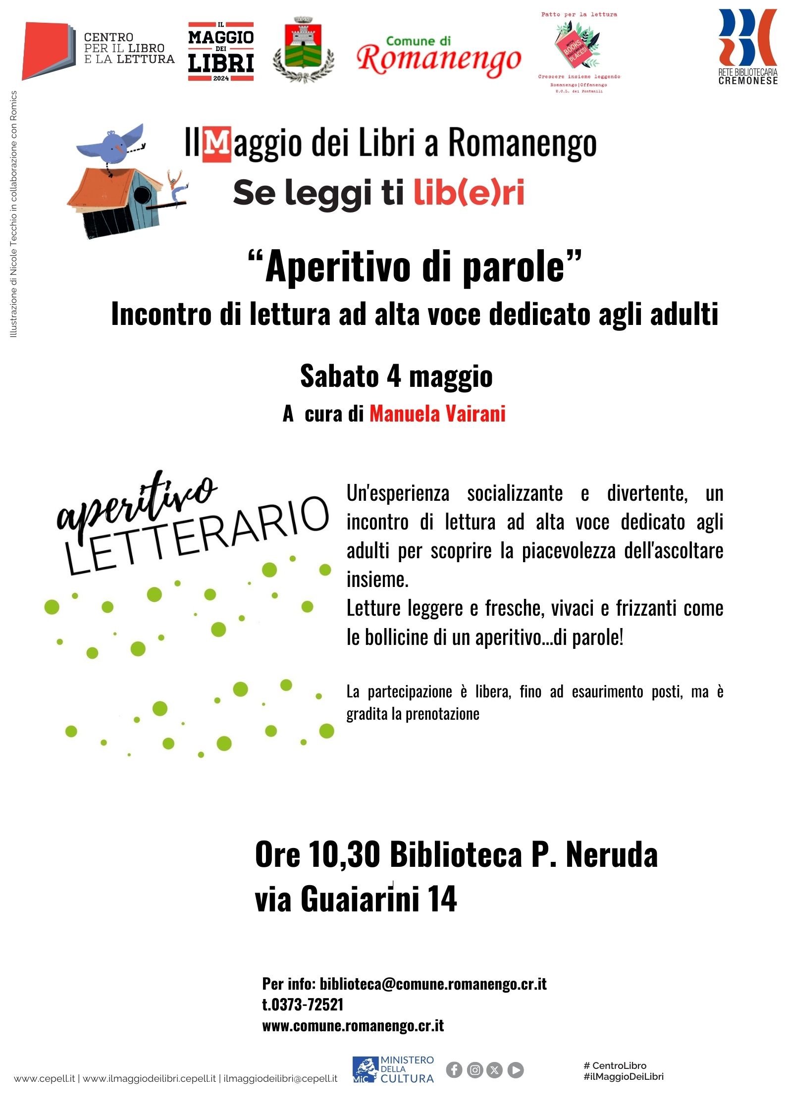 "Aperitivo di parole": incontro di lettura ad alta voce dedicato agli adulti UNIQUE CODE: 202401478