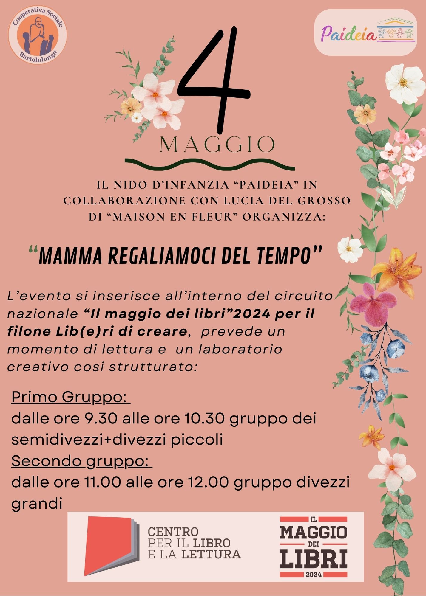L'evento ospiterà le famiglie frequentanti l'asilo nido Paideia. La mattinata prevederà un momento di accoglienza con lettura tematica riguardo il filone liberi di creare e sarà accompagnata da un laboratorio creativo insieme ai bambini.