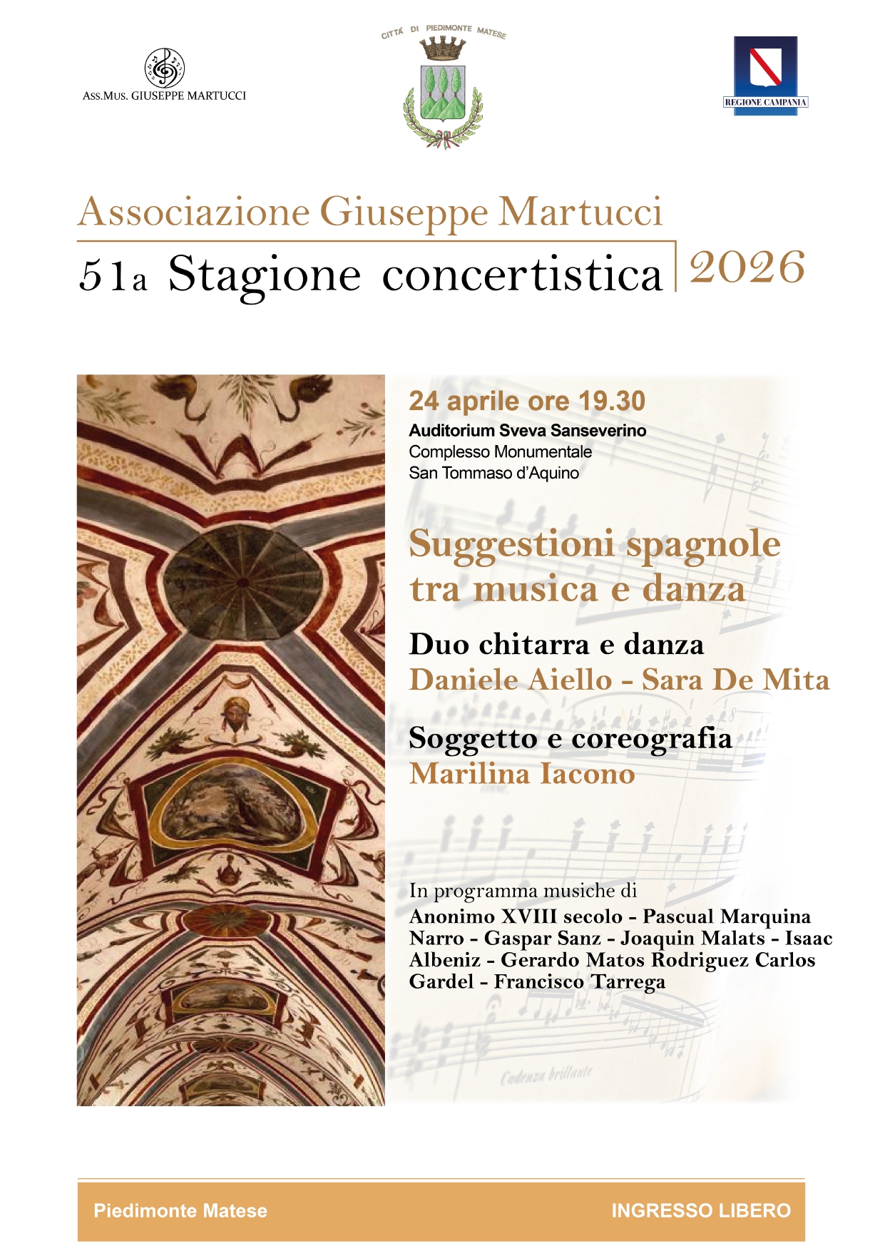 Il 24 aprile, ore 19:30, all’Auditorium Sveva Sanseverino di Piedimonte Matese, lasciati guidare in un viaggio tra suoni e movimento con il duo Daniele Aiello – Sara De Mita.