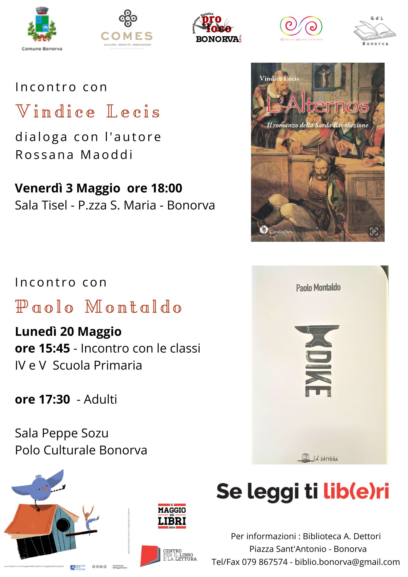 L'evento è organizzato dalla Biblioteca Comunale "A. Dettori" di Bonorva in collaborazione con il Comune, la cooperativa Co.Me.S, la Pro Loco, la Consulta giovanile e