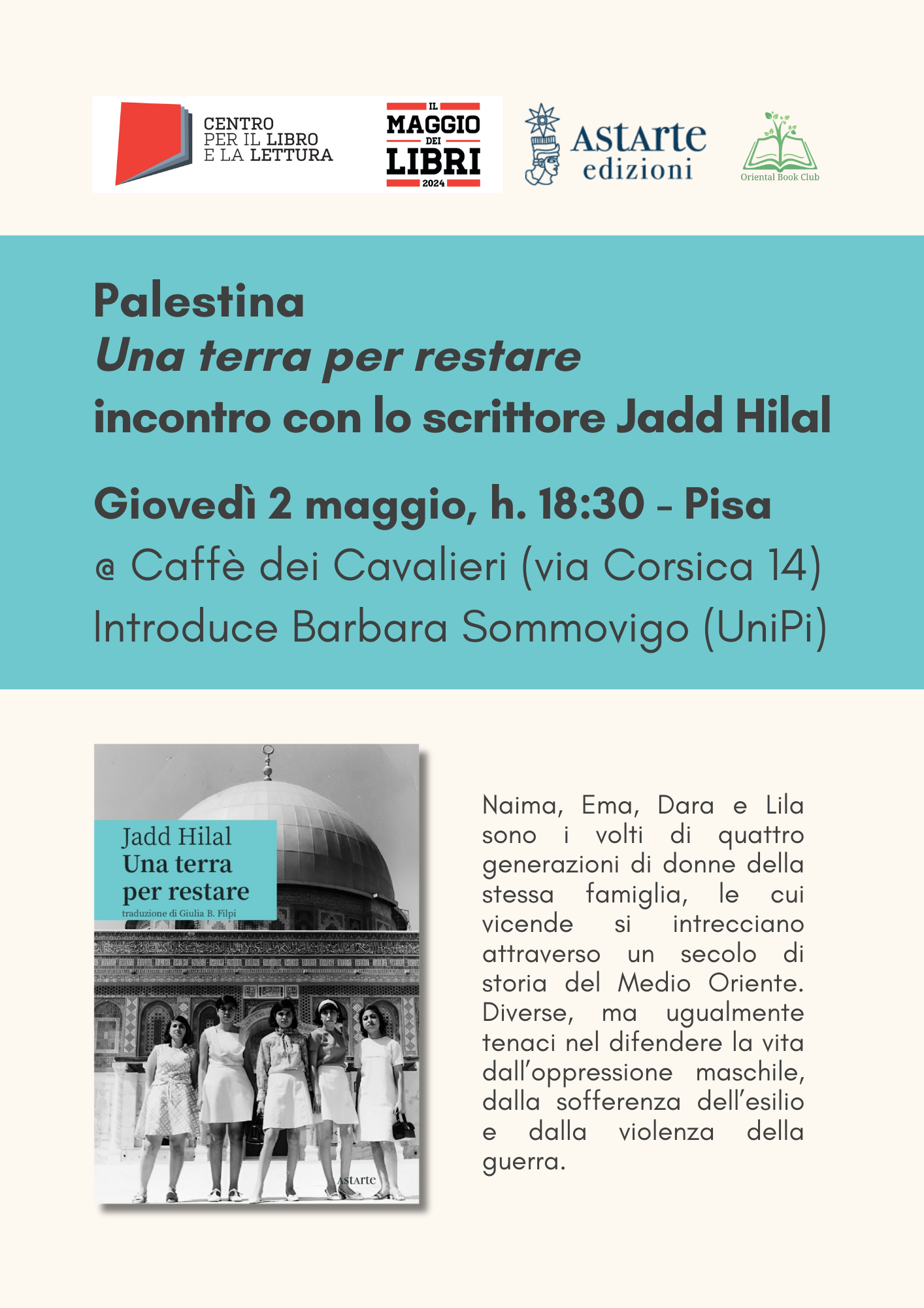 Giovedì 2 maggio alle 18:30, Caffè dei Cavalieri (via Corsica 14, Pisa) presentazione di “Una terra per restare” dello scrittore francese di origine palestinese-libanese Jadd Hilal, edito da Astarte Edizioni.
