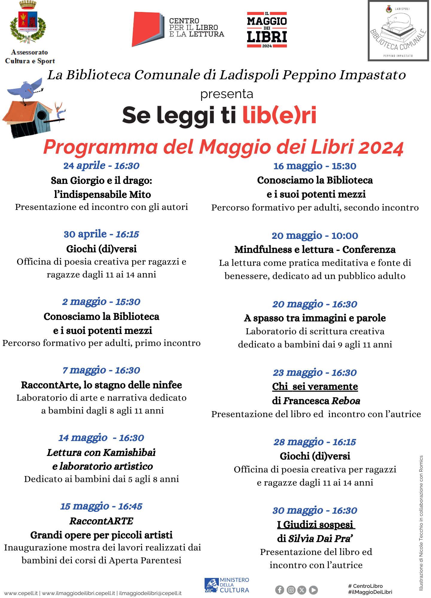 Il progetto, curato dall'Associazione Aperta Parentesi, si terrà in Sala Conferenze ed è realizzato con il sostegno della Regione Lazio per Biblioteche, Musei e Archivi – Piano annuale 2023, L.R. 24/2019;; la partecipazione è libera e gratuita con prenotazione obbligatoria ai contatti della Biblioteca.