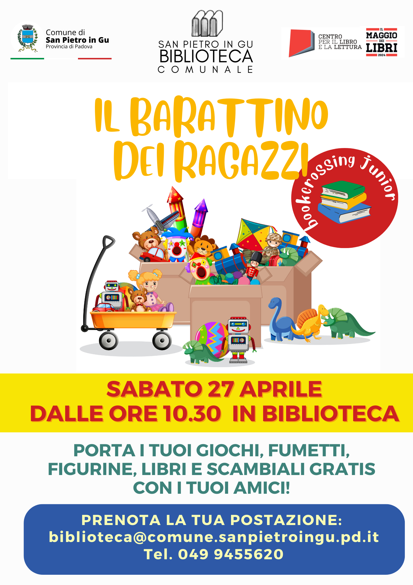 Sabato 27 aprile dalle ore 10.30 torna il Barattino dei Ragazzi!