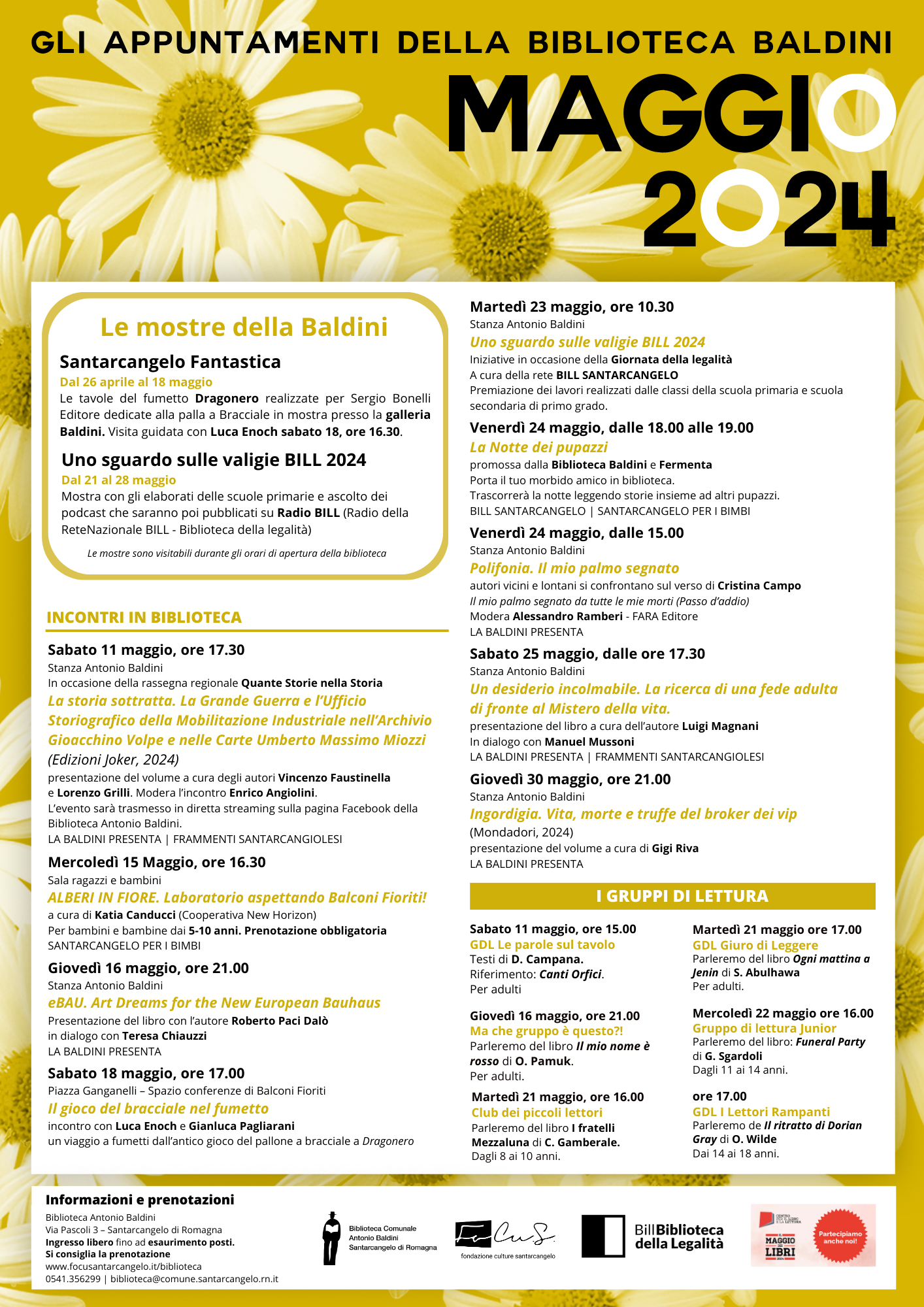 Un ricco calendario di iniziative alla Baldini per il Maggio dei libri 2024.