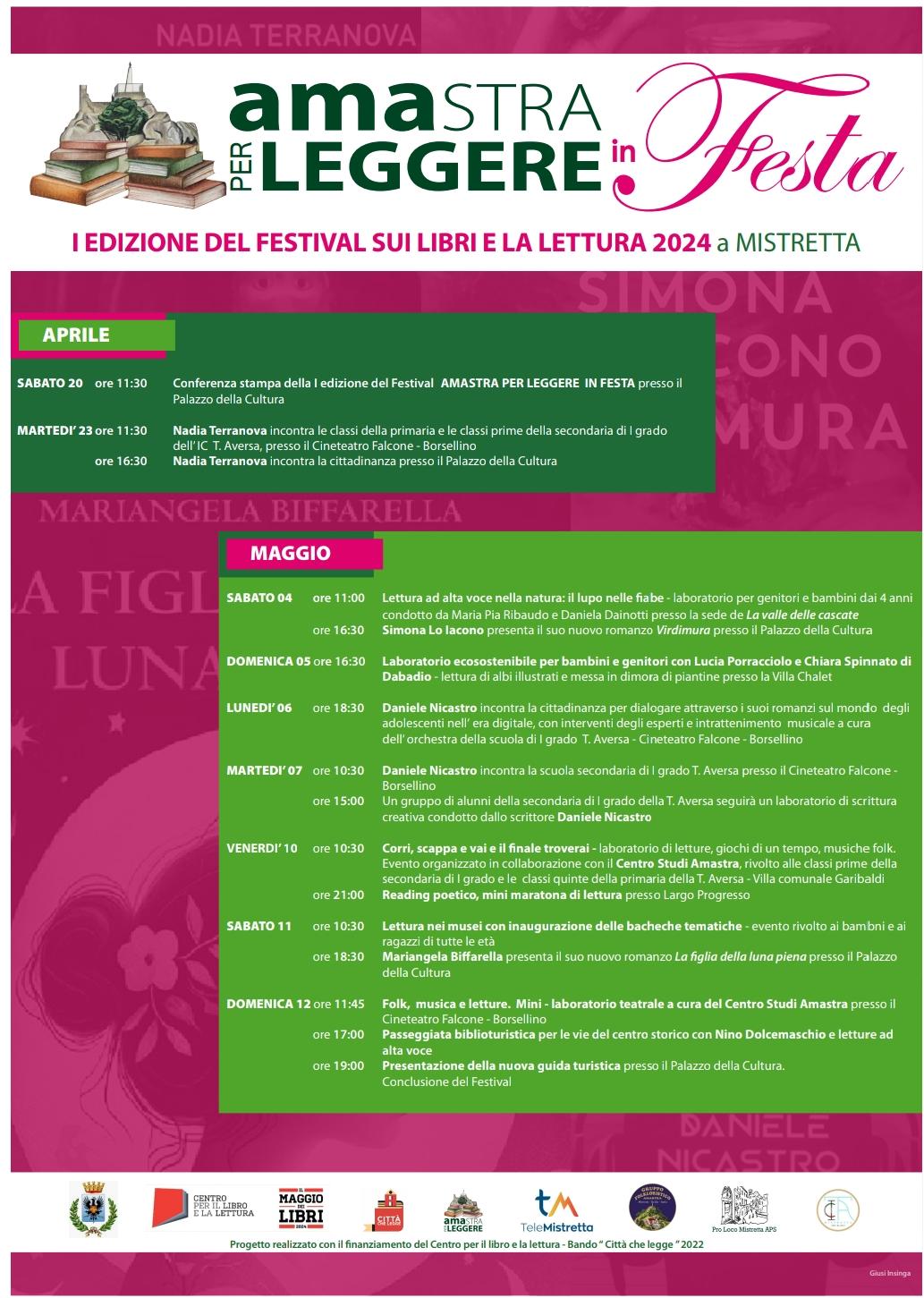 A Mistretta, nel messinese, si è svolta la prima edizione del festival della lettura “AMAstra per LEGGERE in Festa ”, dal 23 aprile al 12 maggio. In poco meno di tre settimane otto giornate sono state dedicate agli amanti della lettura.