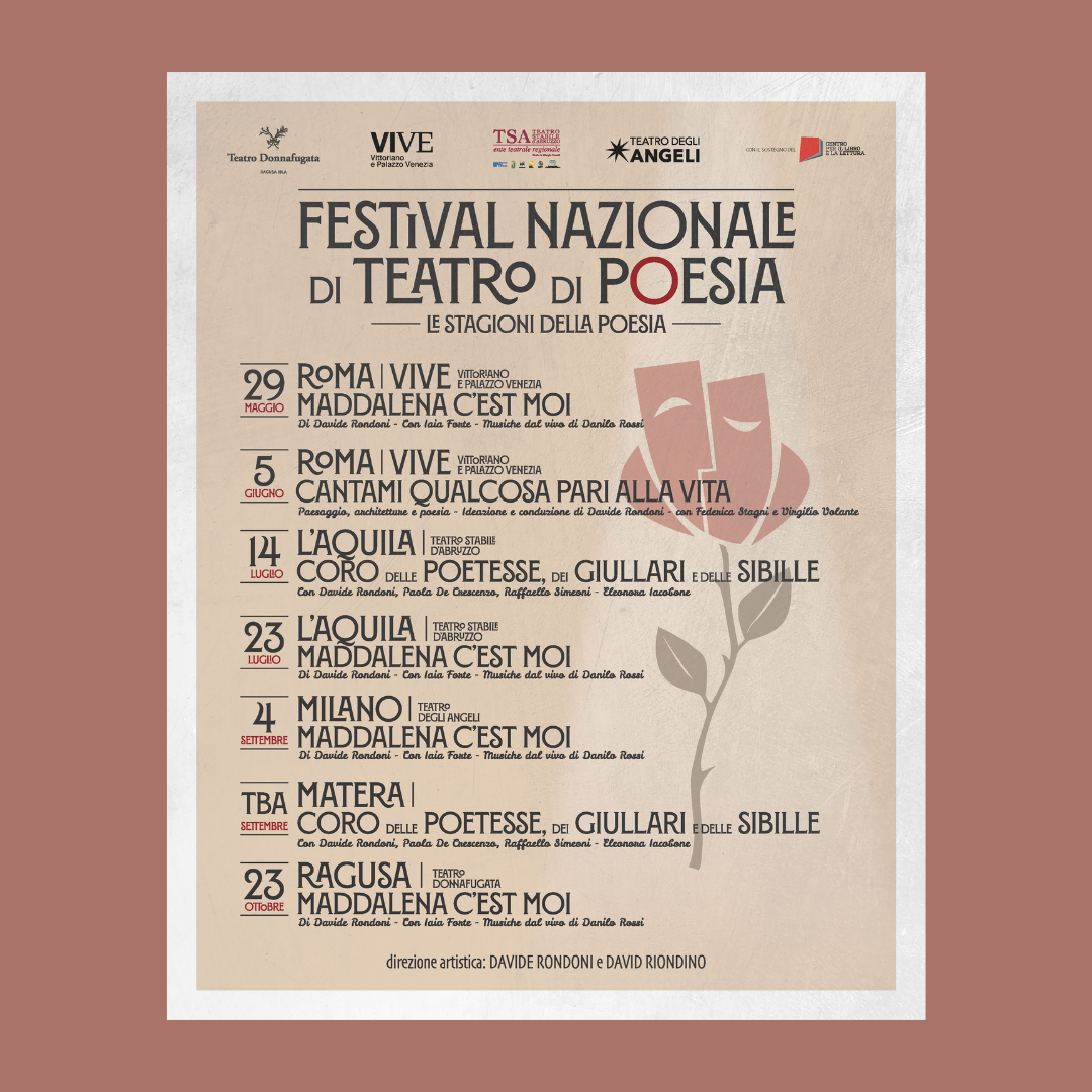 Il festival non è solo una rassegna, ma mira alla costruzione di una vera e propria rete nazionale di “Teatri di Poesia”, coinvolgendo nuovi pubblici, in particolare i giovani. Il programma prevede produzioni originali che uniscono recitazione e musica dal vivo. Il debutto ufficiale avverrà a Roma, nella splendida cornice del VIVE – Palazzo Venezia, con due appuntamenti pensati su misura per il luogo: